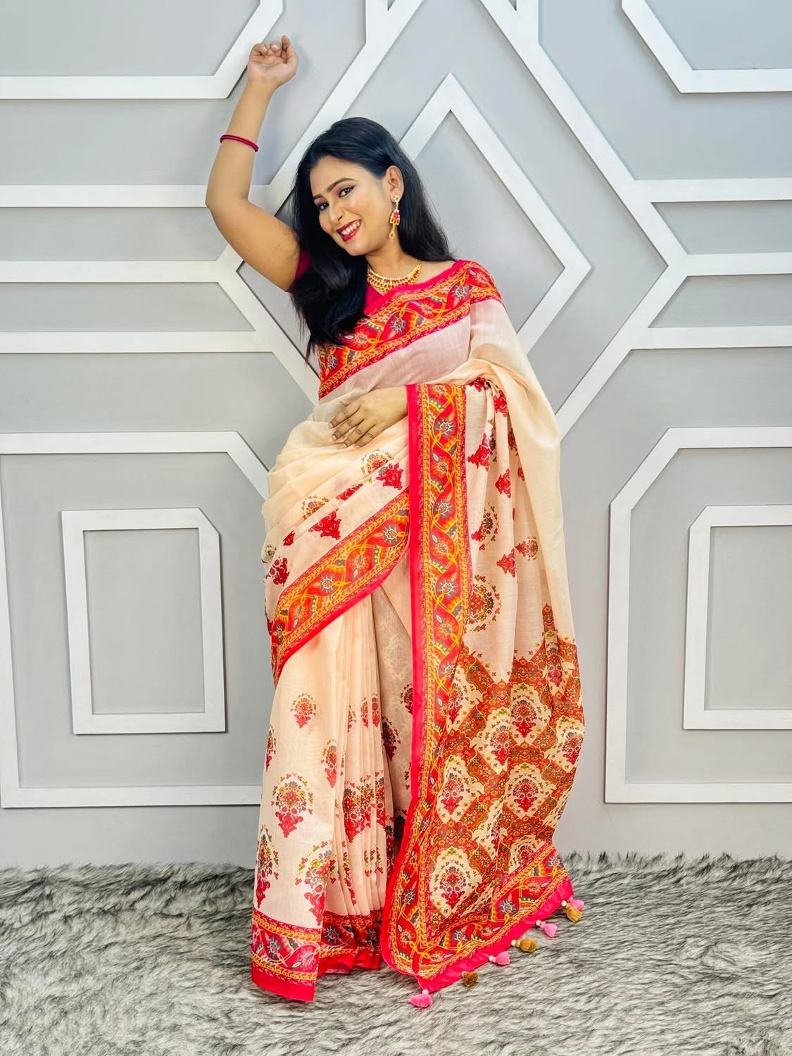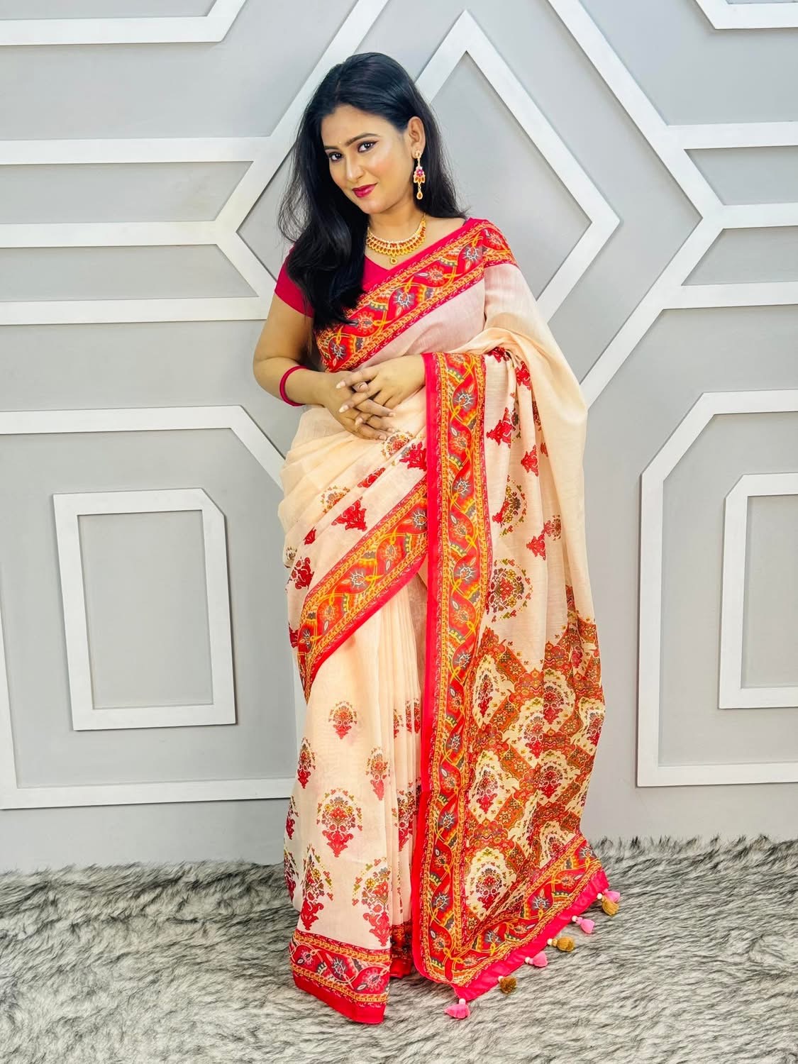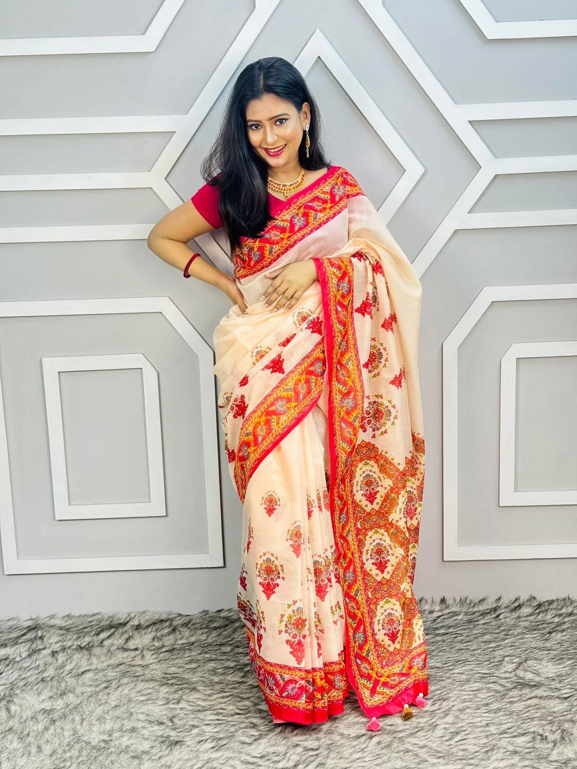 Semi Organza Silk Digital Printed Saree With Blouse Piece | BDS-26