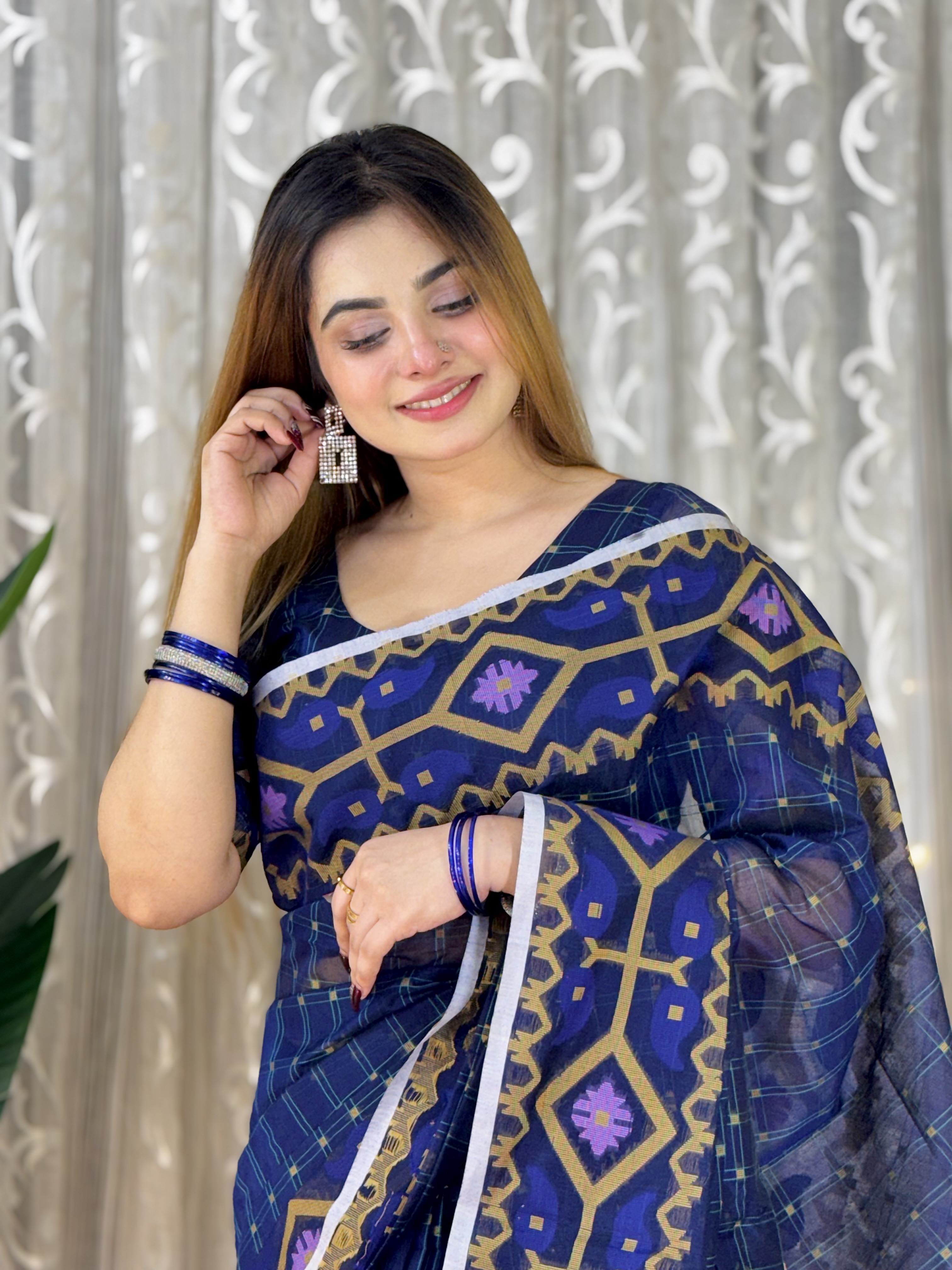 টাকেলি ব্র্যান্ডের টাঁট জামদানি সুতির শাড়ি