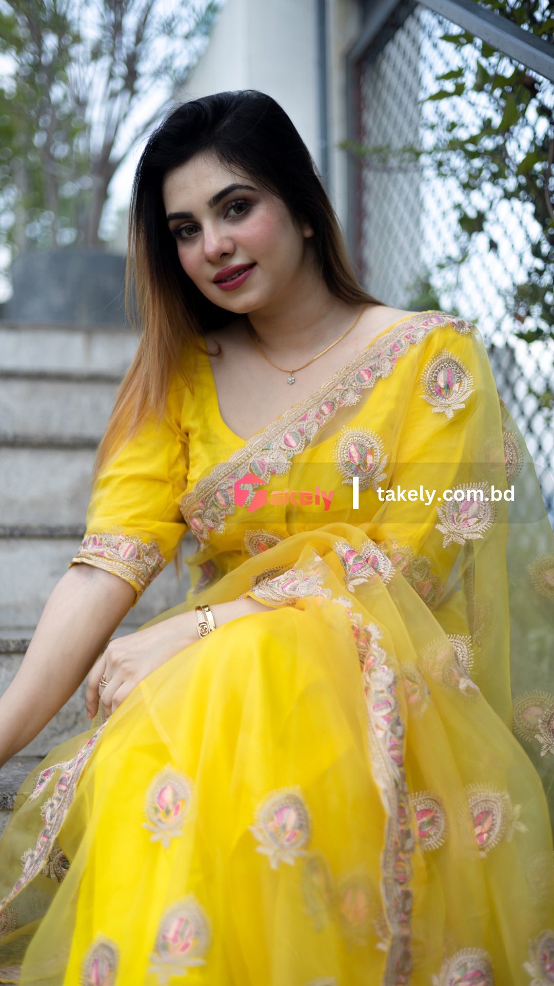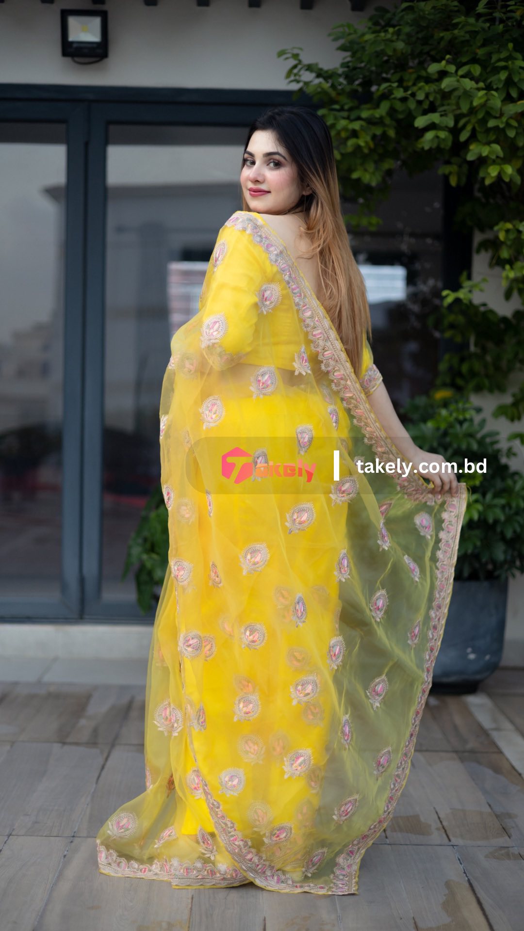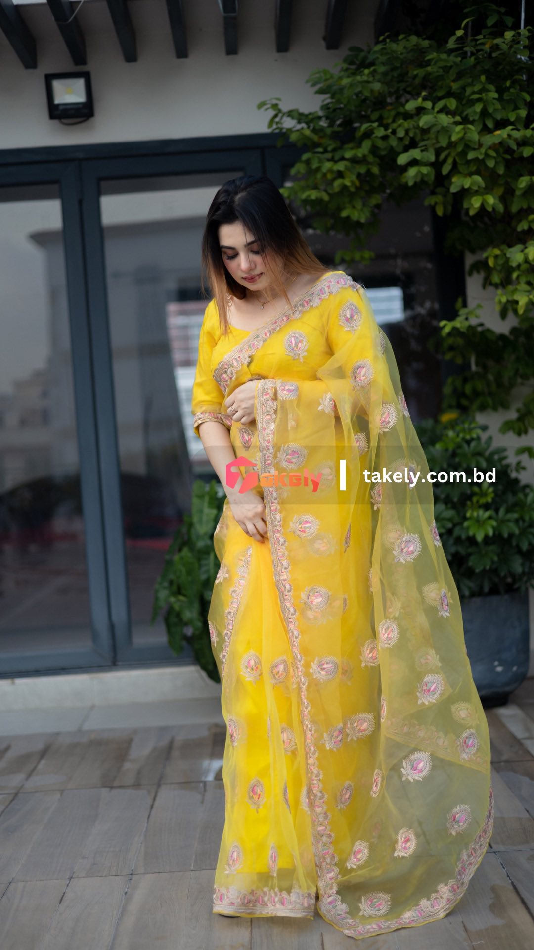 এক্সক্লুসিভ অর্গানজা পার্টি শাড়ি। EMB-109