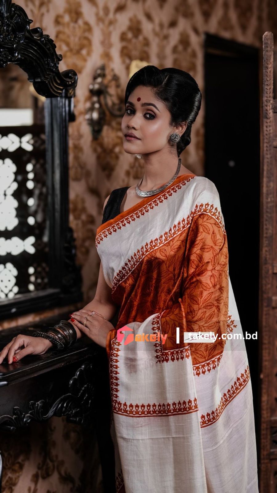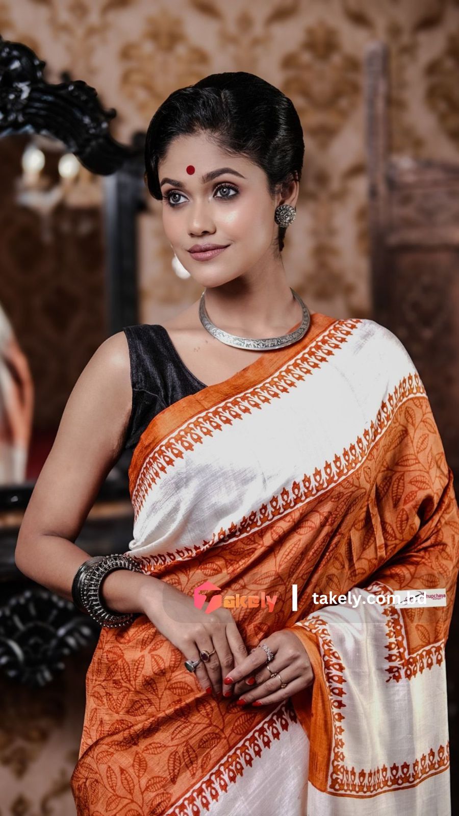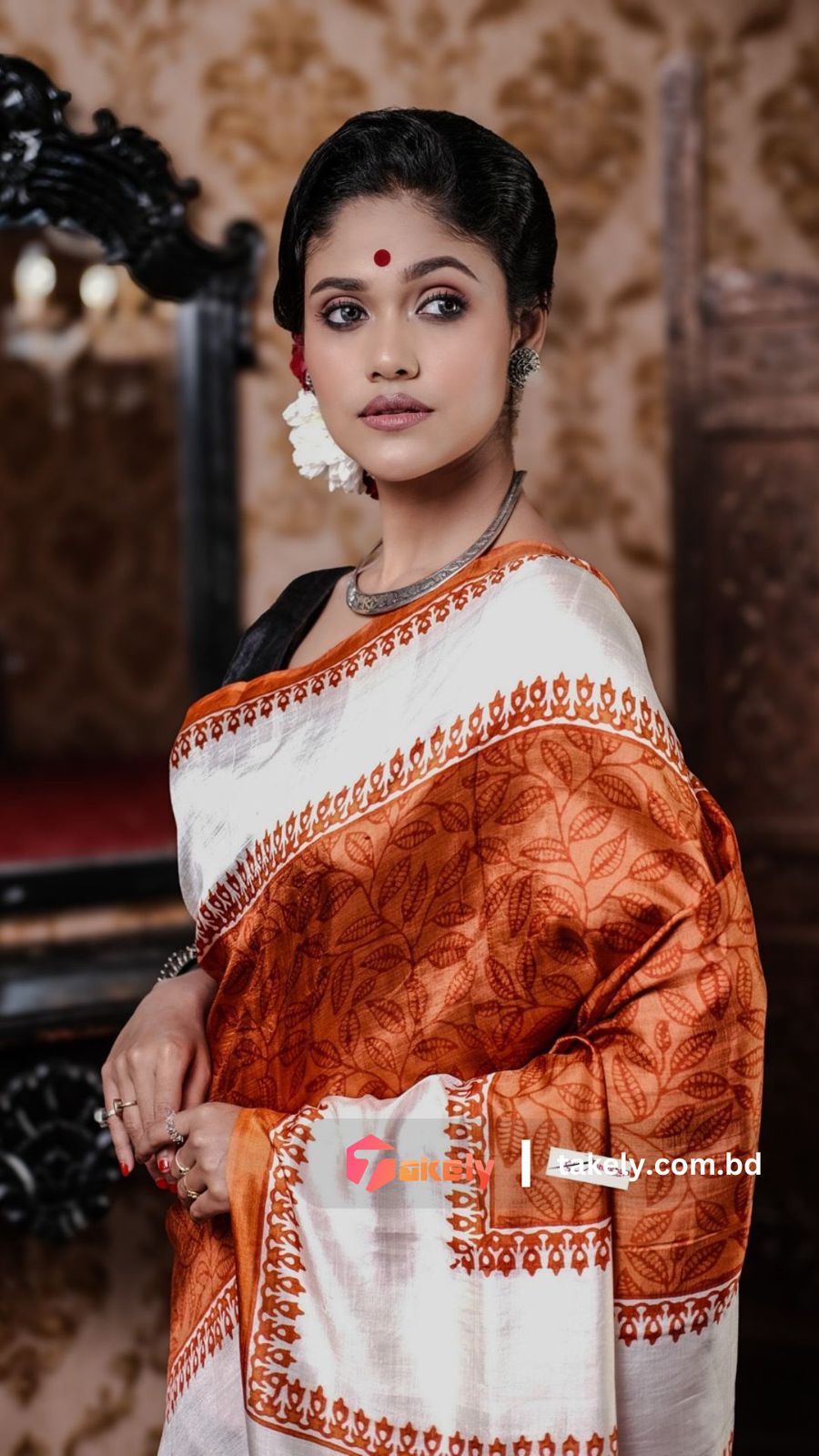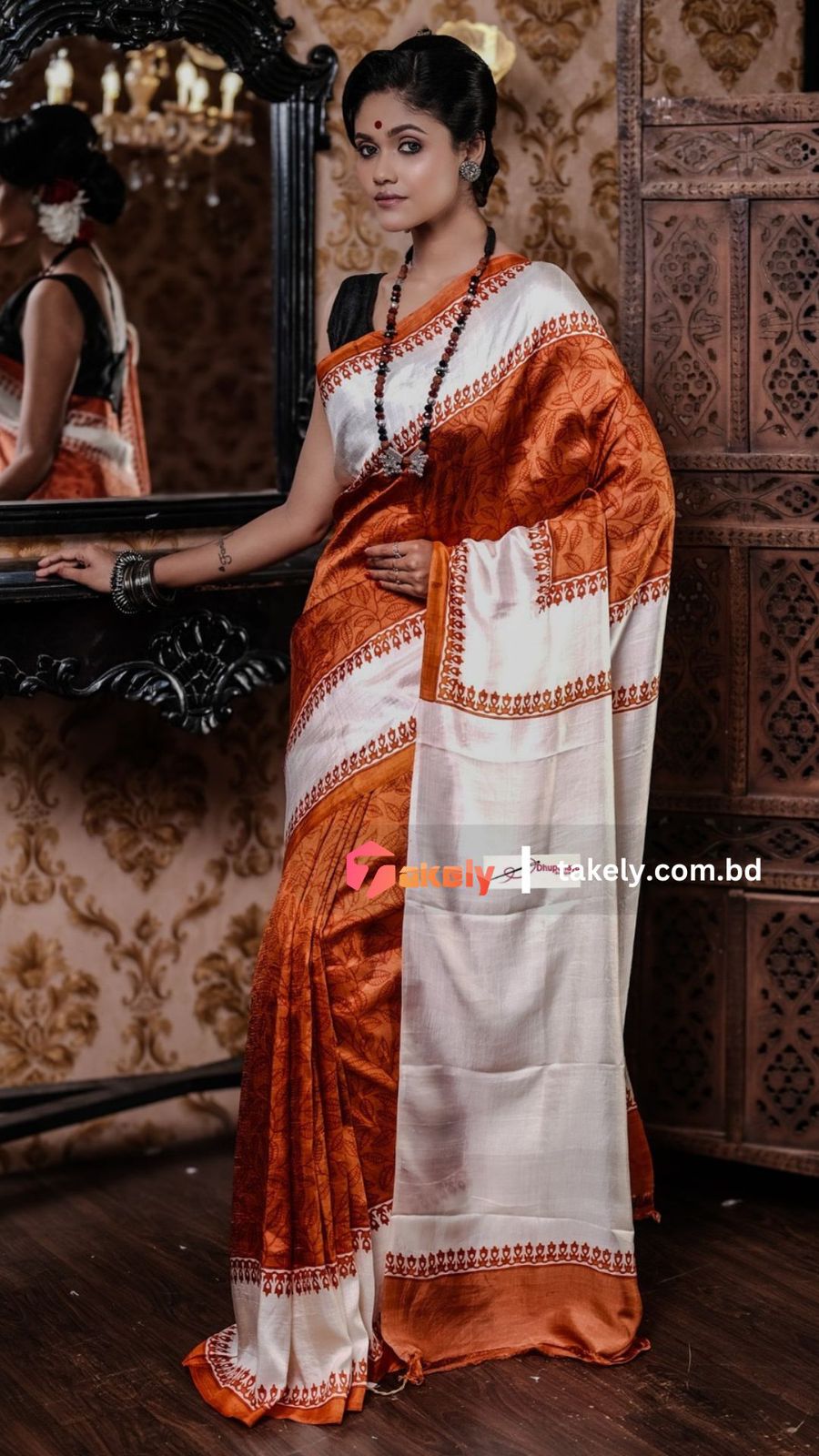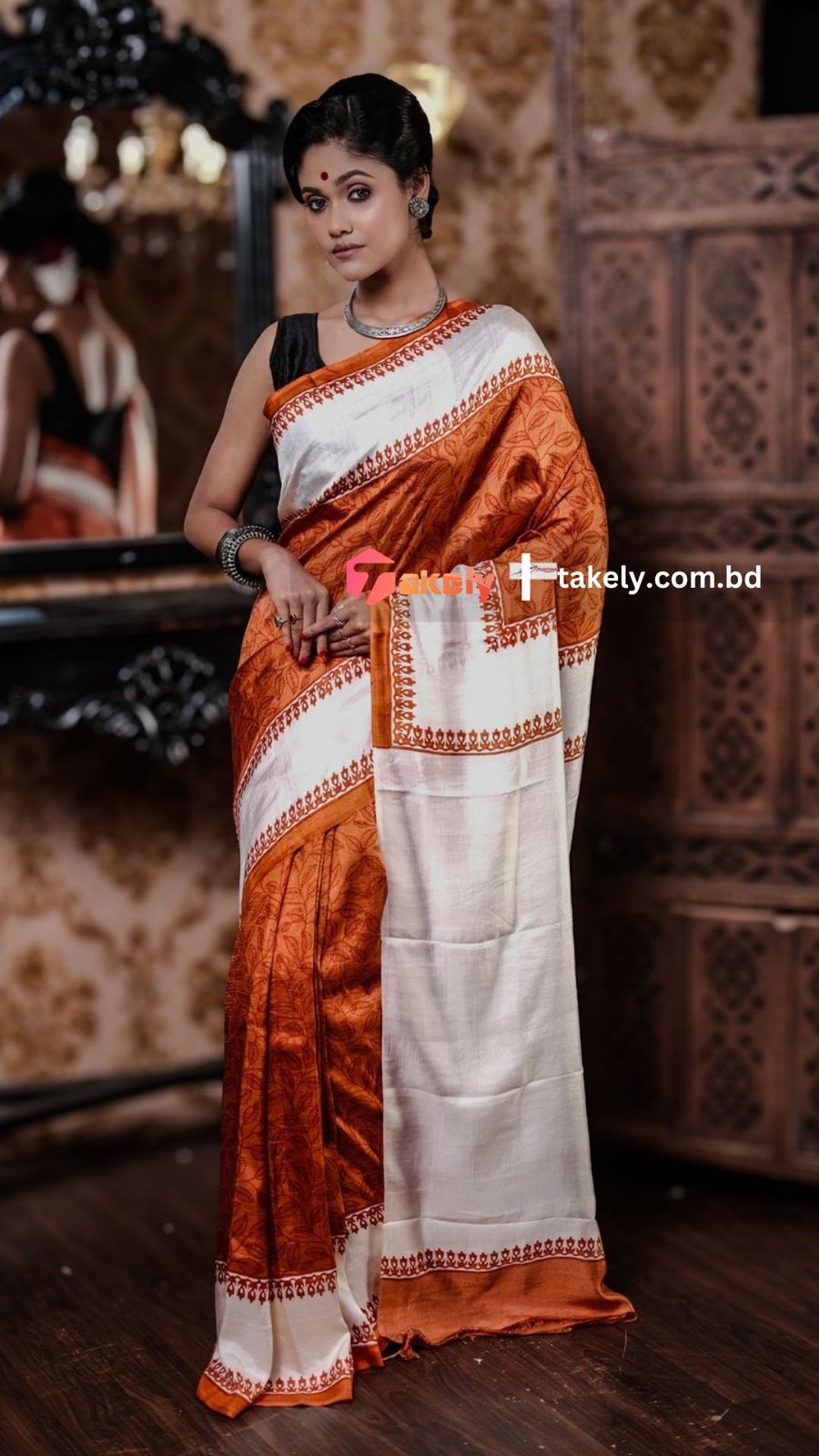 Step into timeless beauty with our Elegant Orange & White Digital Print Saree, where vibrant artistry meets unmatched comfort. this saree is crafted to make you the center of attention at every occasion.