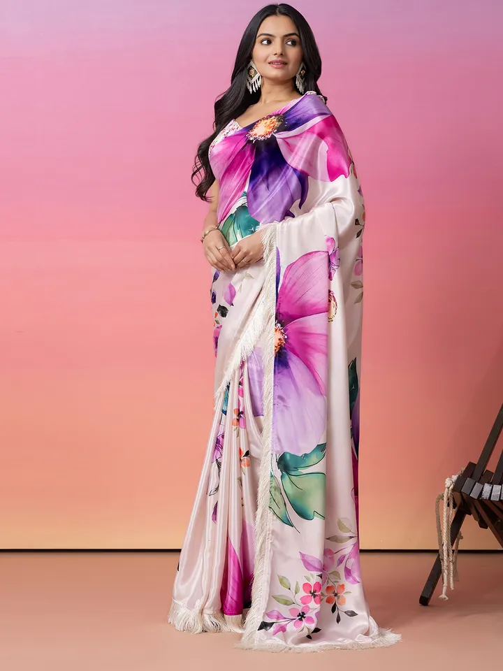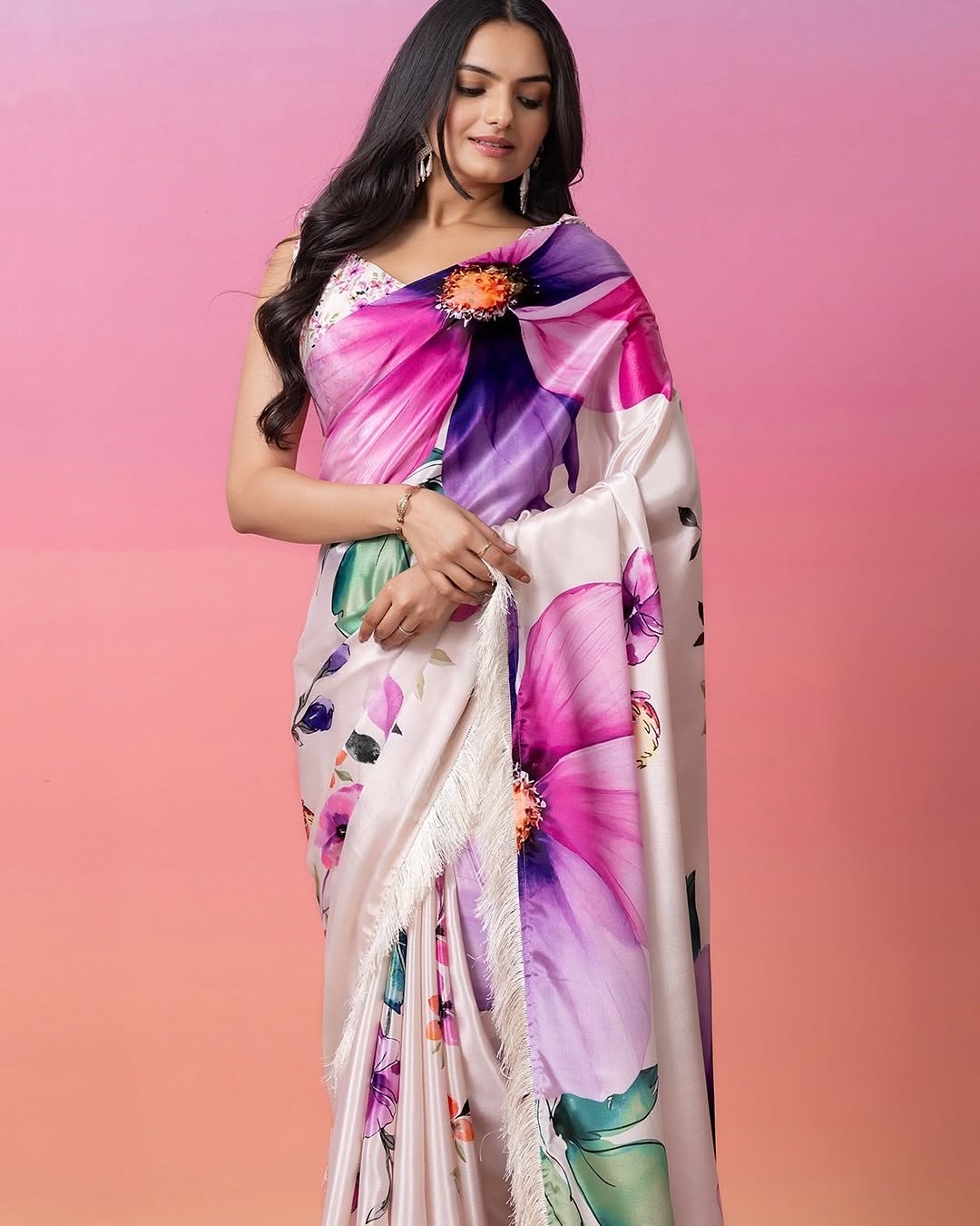 Floral Digital Printed Soft Silk Saree With Blouse Piece | DG-225
