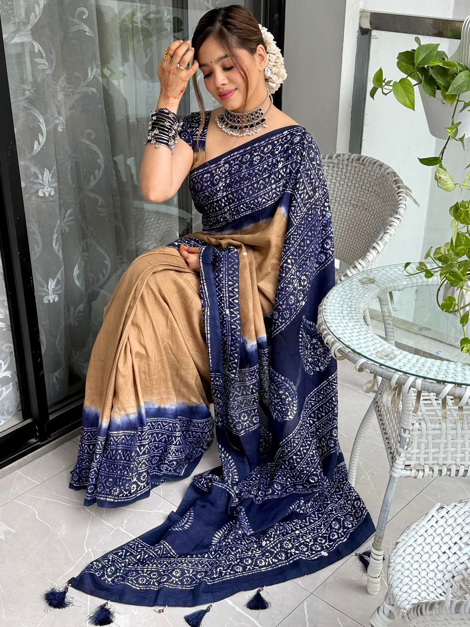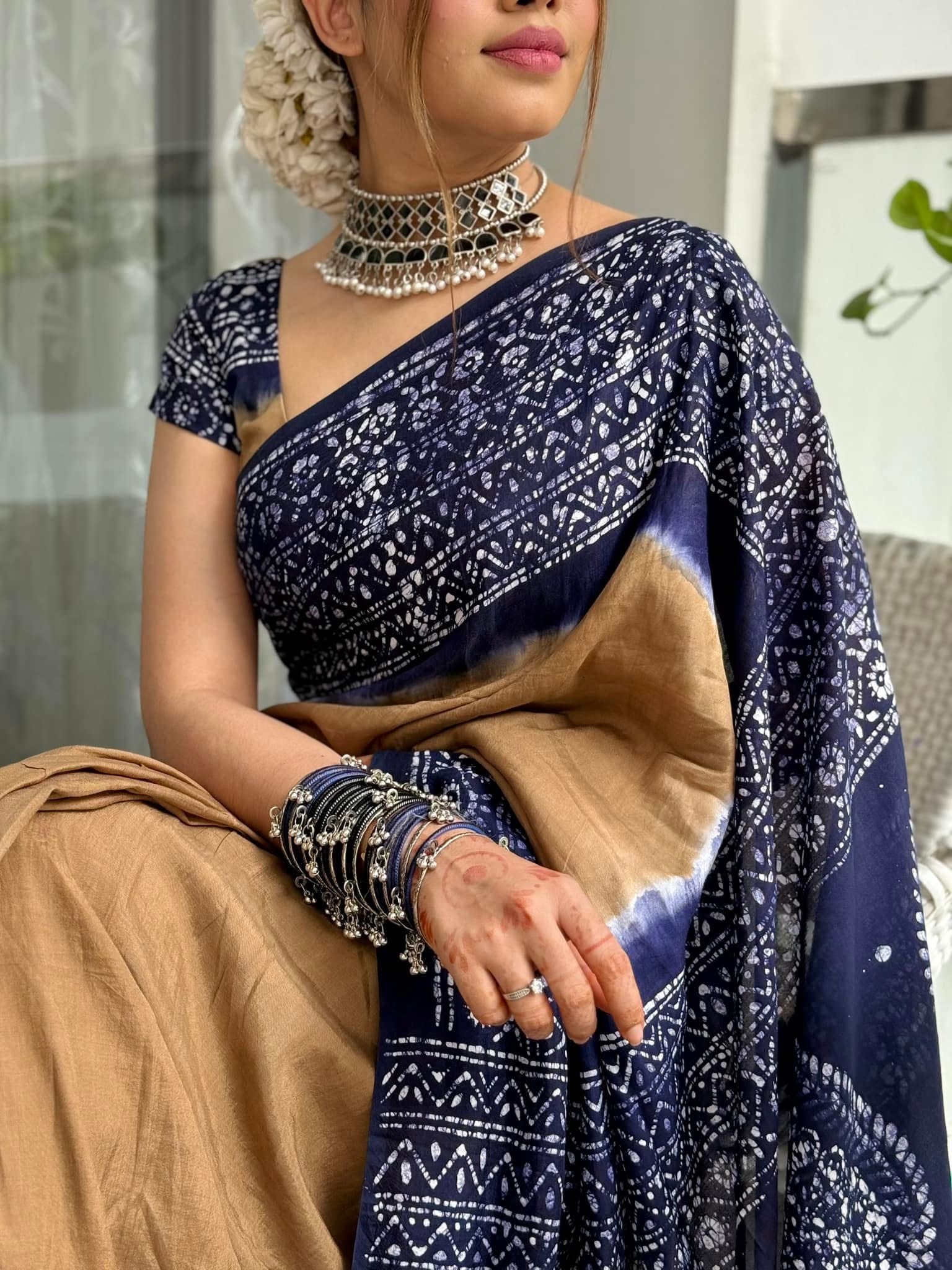 Step into timeless beauty with our New batik design printed Saree with blouse piece | BDS-04, where vibrant artistry meets unmatched comfort. this saree is crafted to make you the center of attention at every occasion.